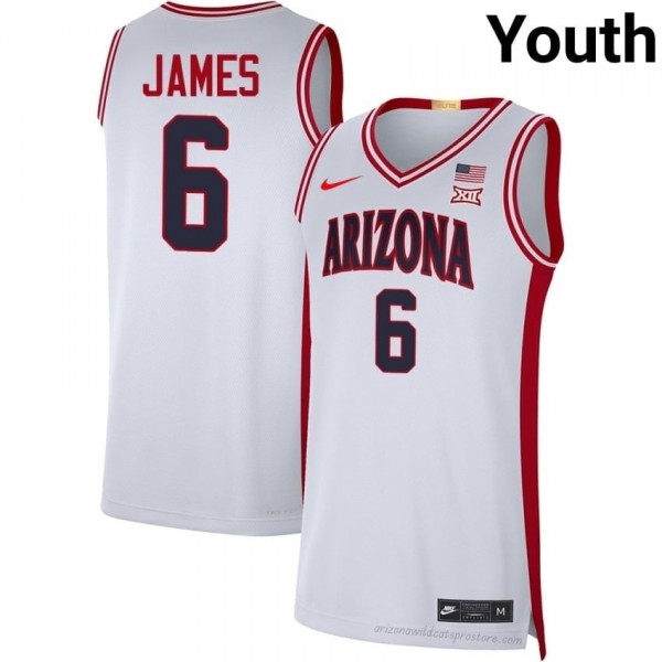 AZ Wildcats Bryce James #6 White Youth Basketball Player Premium Stitched Jersey | Limited Stock